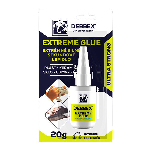 Extrémně silné sekundové lepidlo EXTREME GLUE na okamžité lepení plastu, keramiky, skla, gumy nebo kůže. Toto lepidlo drží do několika sekund bez nutnosti odvětrávání.